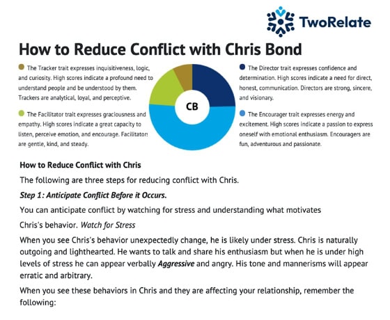 TwoRelate is a simple yet powerful tool that helps you identify and understand your communication style and shows you how to better relate to others—whether it’s your partner, coworker, friend, or family member. After a quick, 24-question survey, you’ll receive your personalized Communication Profile, packed with insight into how you express yourself, what you need, and how others perceive you.